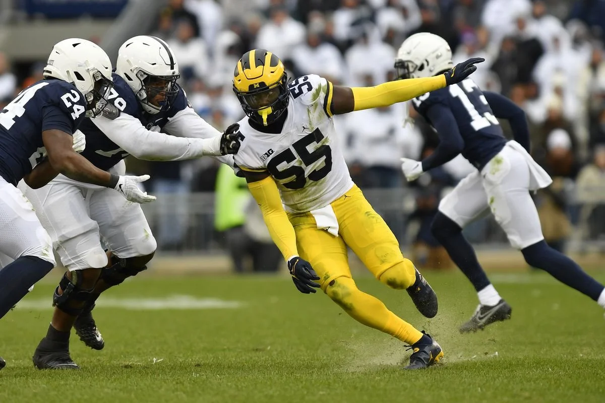Michigan EDGE Rusher, David Ojabo, realizing Penn State sent multiple players to block him, and it doesn’t even matter.